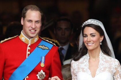 Kate Middleton wore a Sarah Burton for Alexander McQueen dress when she married Prince William in 2011Prince William, Duke of Cambridge and Catherine, Duchess of Cambridge wave to onlookers from…