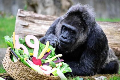 The gorilla, who has been photographed eating cake throughout the…