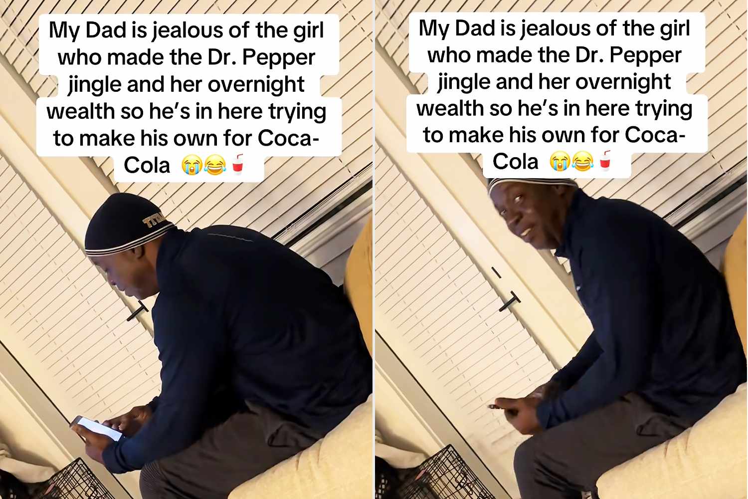 TikTok user @kiaeliz__ posted the clip with the text overlay, “My dad is jealous of the girl who made the Dr. Pepper jingle and her overnight wealth so he’s in here trying to make his own for Coca-Cola.” In the caption, she added a string of laughing emojis before writing, “Coca-Cola let’s give my dad a deal. He’s so committed.”