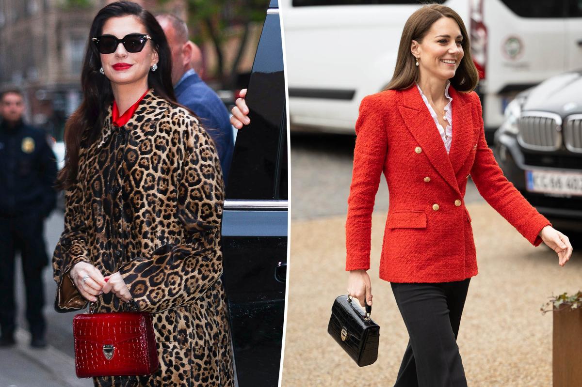 Anne Hathaway kept her fashion hot streak going this week, attending a “Devil Wears Prada 2” screening in NYC wearing a bold leopard-print coat and an equally statement-making Aspinal of London Midi Mayfair Bag in a glossy cherry croc finish.