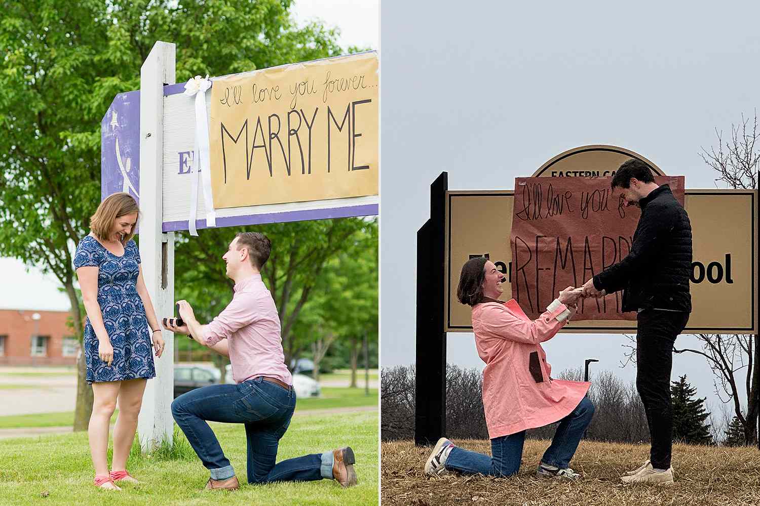 Tia decided to replicate the big moment by proposing back to Cameron at Jonathan Elementary School on March 10, 2026 — the 16th anniversary of their first date. She even made a sign that read, "I’ll love you forever… Re-Marry Me."