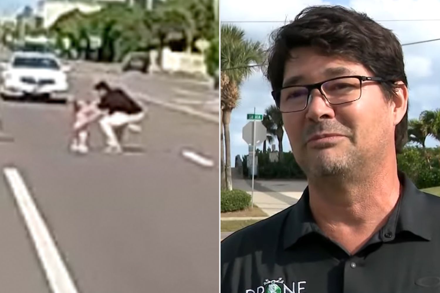A father of five rushed to save two toddlers who walked onto a busy Florida road. The dramatic rescue was caught on dashcam footage.
