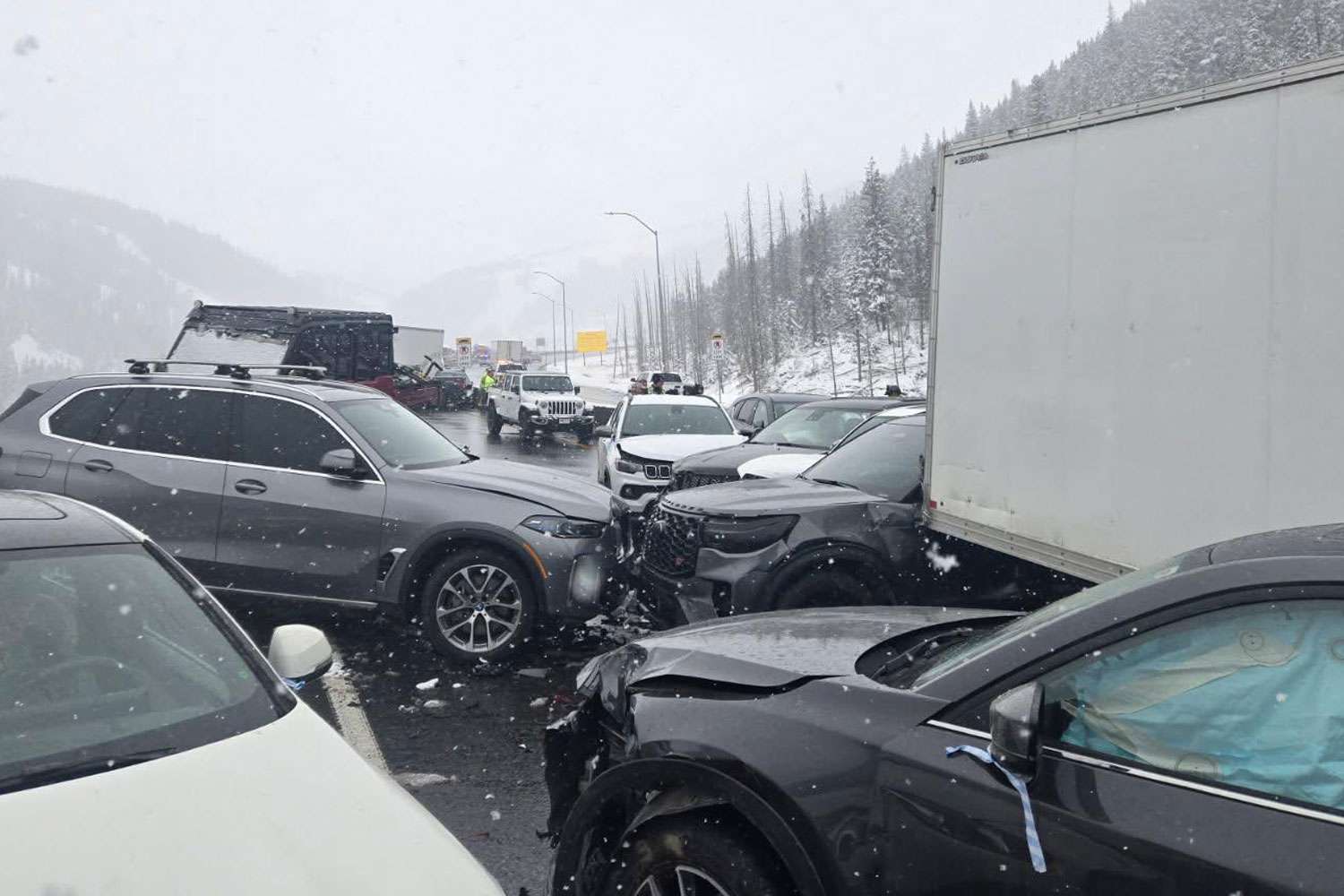 The Clear Creek County Sheriff's Office announced the multi-vehicle crash at 3 p.m. on an on-ramp to Interstate 70 East on Tuesday, April 14, amid snowy conditions. In a later update, officials said an estimated "75+" vehicles were involved in the crash and blocked I-70 and Highway 6 eastbound. I-70 East was closed at the Eisenhower Tunnel.