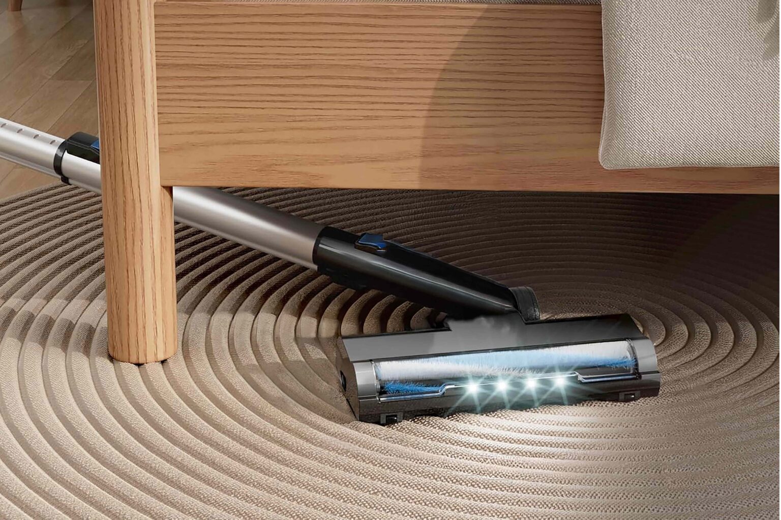 The vacuum has an upright design that’ll let it stand freely — no balancing act required. You can also convert it into a handheld design to pick up crumbs on your couch and underneath your fridge. It comes with a built-in light that illuminates dark corners or smaller dust and debris you may normally miss with other vacuums.