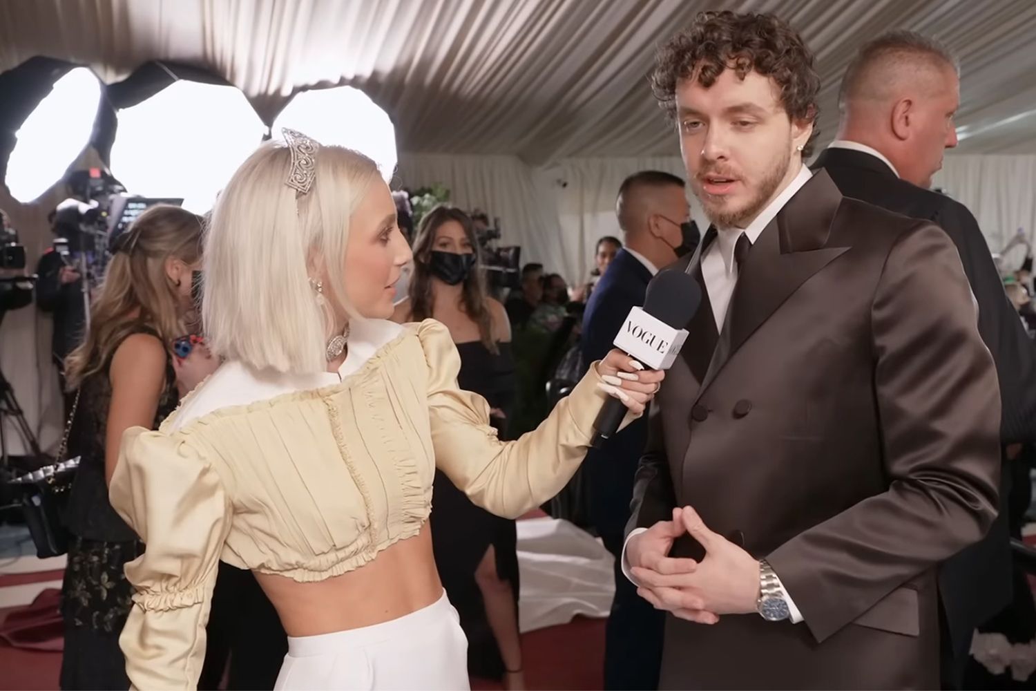 “That’s like a piece art, because there’s so many ways to interpret that,” said Harlow coyly of the clip, days after the Met Gala. “Everyone has a different take on what was going through our heads, so I’ll leave it up to interpretation.”