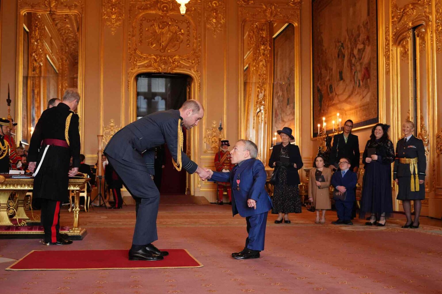 Prince William honored actor Warwick Davis, best known for his roles in Harry Potter and Star Wars, with a prestigious Order of the British Empire honor during a star-studded ceremony at Windsor Castle on Wednesday, March 11.