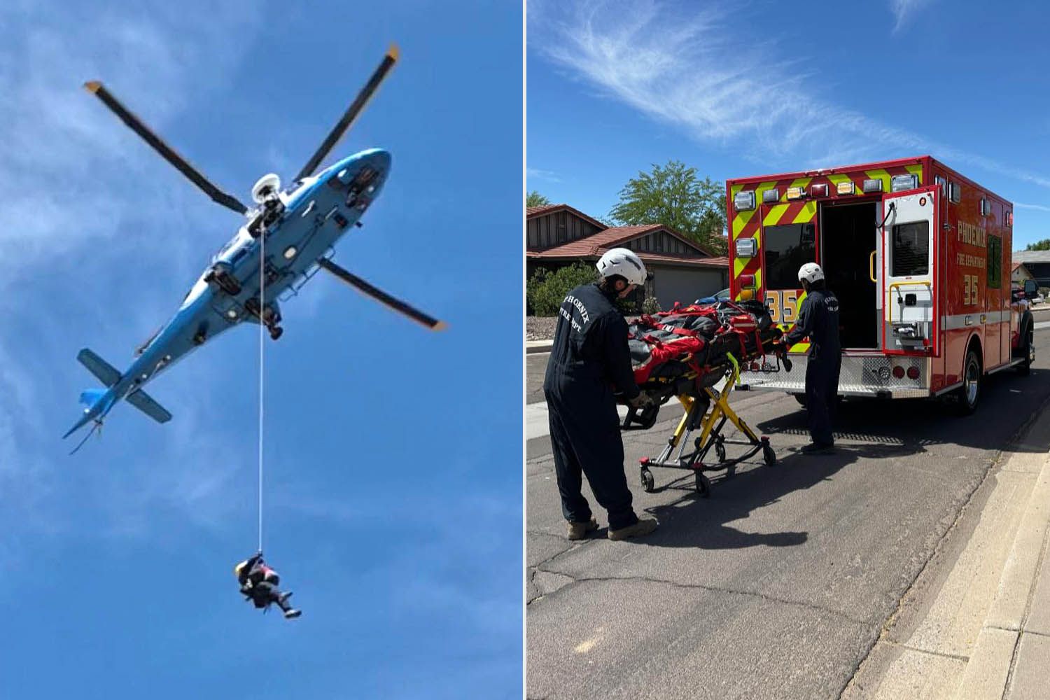 Fire crews in Phoenix used a helicopter hoist to extract the man, who was then taken to a hospital via ambulance in critical condition