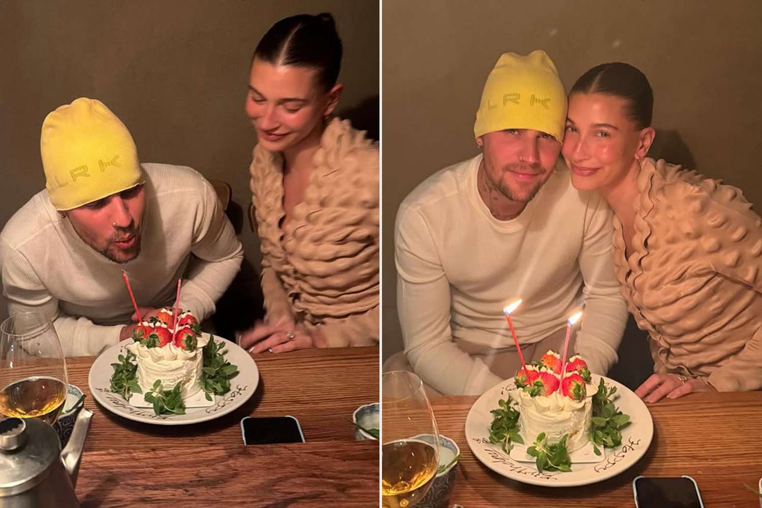 “no one id rather spend my birthday withhh.. :)) 💋” the star captioned two images of him blowing out the candles on top of a fresh cream cake topped with strawberries. A beaming Hailey then posed with her man for a second, smiling snap to mark the moment.