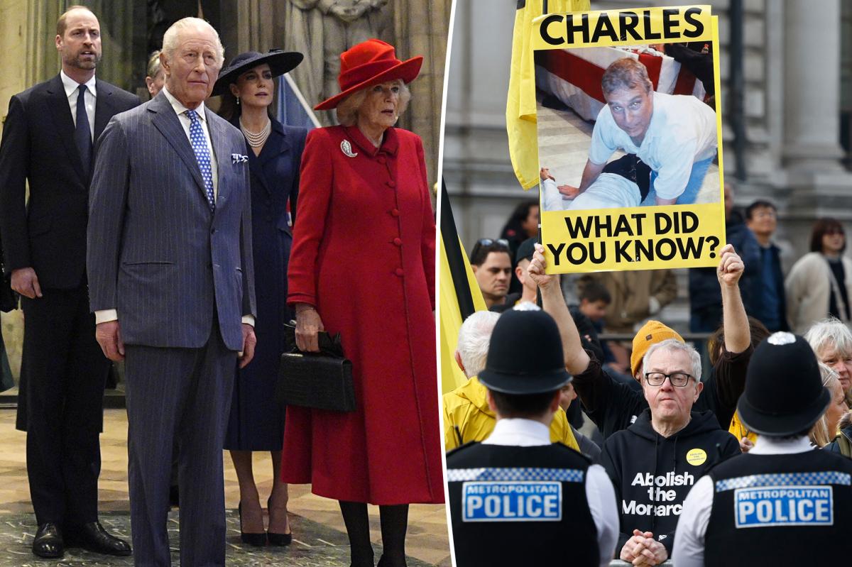 In footage circulating via X, the trio arrived for service at Westminster Abbey in London on Monday, where members of anti-monarchy organization Republic confronted them with large, yellow letters spelling out, “What did you know?”