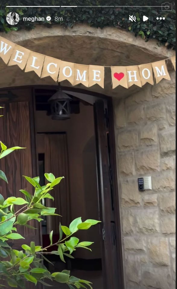 On Sunday, April 19, the Duchess of Sussex, 44, shared a glimpse of her and Harry's arrival home to California on her Instagram Stories, including a clip showing a "Welcome Home" banner adorning their doorway.