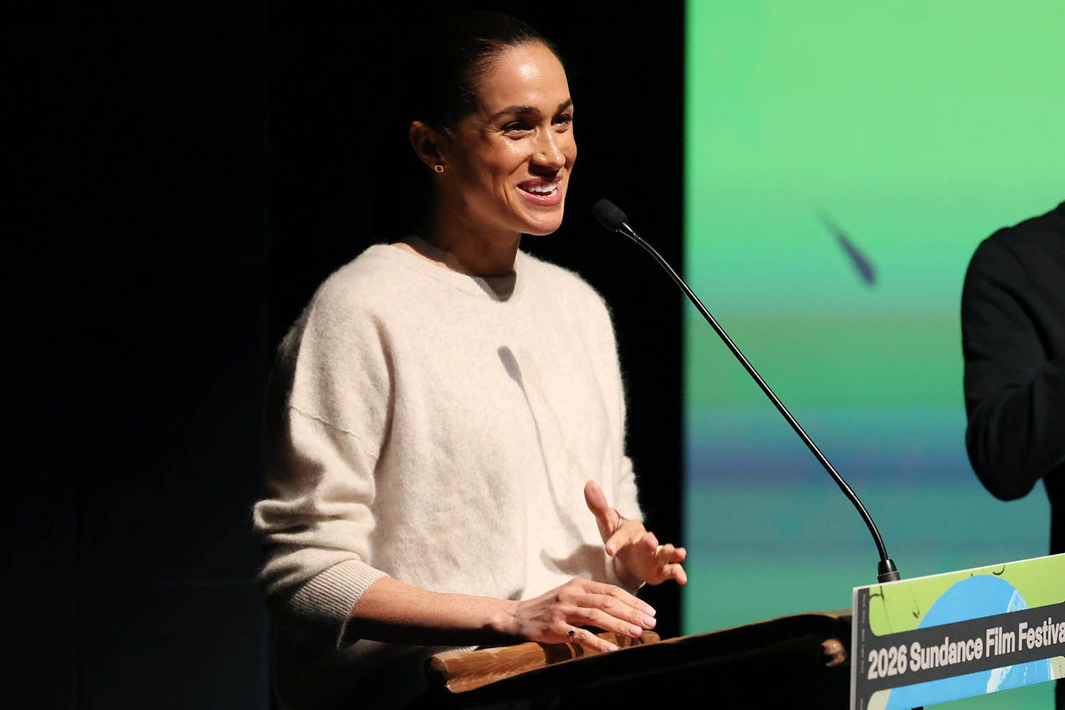 The mom of two later spoke from a podium at Sundance in support of the project,