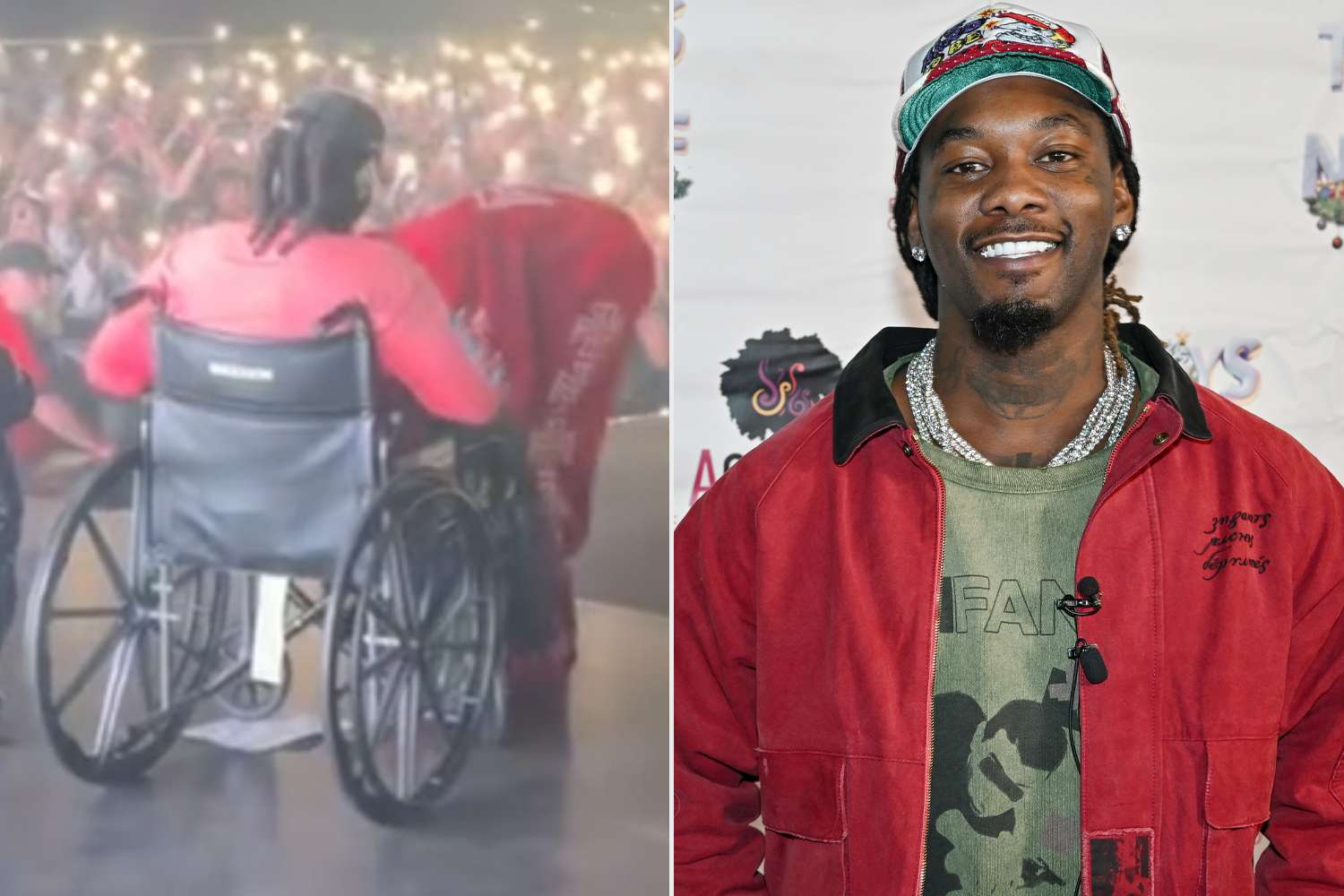 Offset, real name Kiari Cephus, shared a video on Instagram of the moment he arrived on the stage in a wheelchair to perform a set list that included Migos's “Bad and Boujee.”