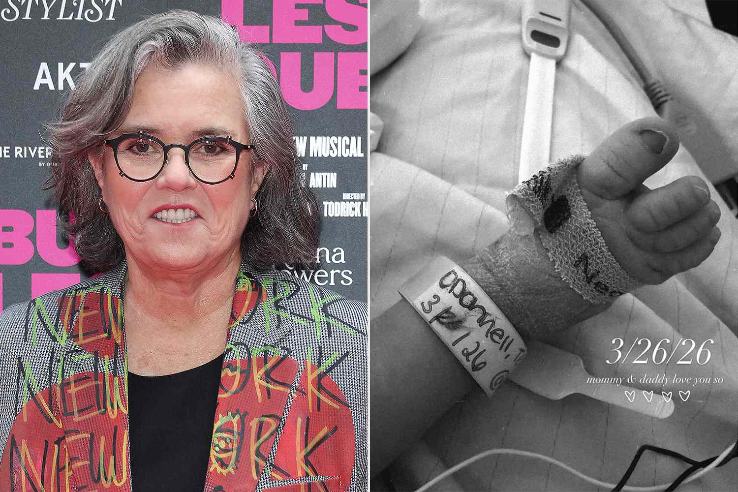 “Anthony Joel O’Donnell has arrived! And my heart burst open,” Rosie captioned a black-and-white photo of her grandson’s foot in the hospital.
