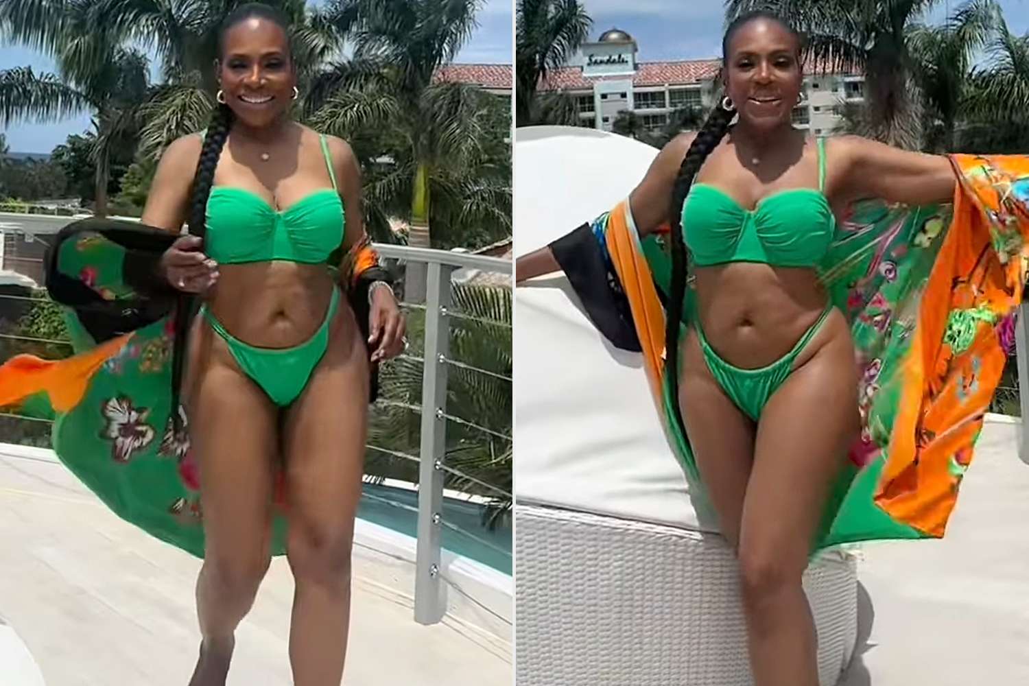 On Friday, March 27, Sheryl Lee Ralph shared an Instagram Reel from her trip to Jamaica, which showed her looking fabulous in a lime green bikini that shows off her abs and toned legs. The Abbott Elementary star, 69, paired her beach-ready suit with a green and orange silk coverup with a floral pattern and a long braid that brushed her hips.