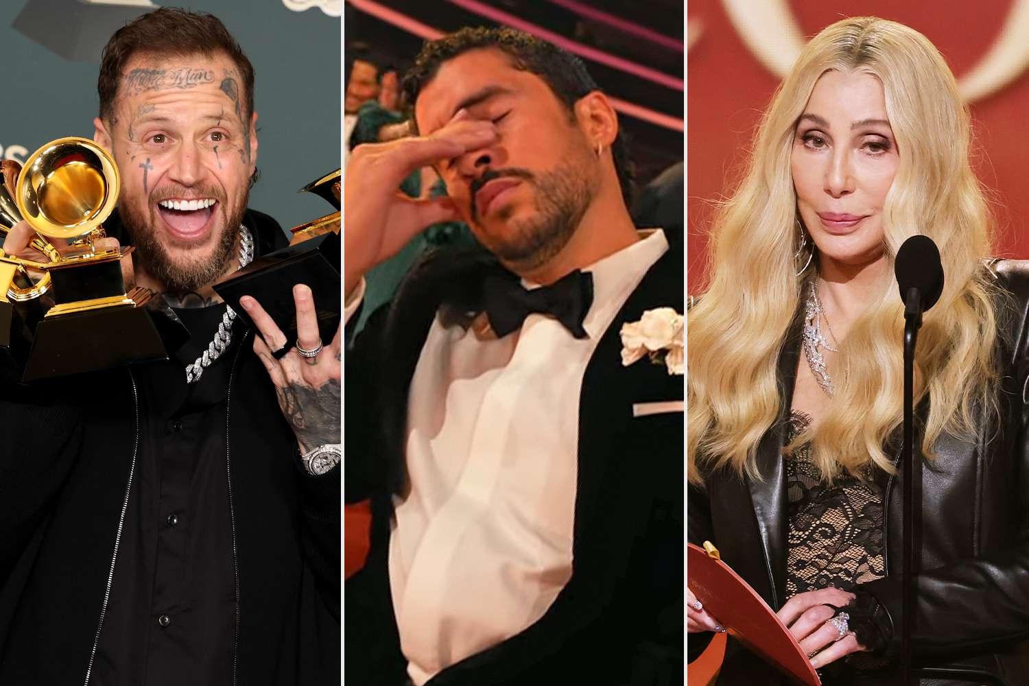 Meanwhile, nobody was happier to be in the room than Jelly Roll, who had a PDA-packed date night with wife Bunnie Xo, rejoiced in his three Grammy wins and was the most in-demand star for celebrities to snap selfies with, posing with everyone from Miley Cyrus to Pharrell Williams to Yungblud.