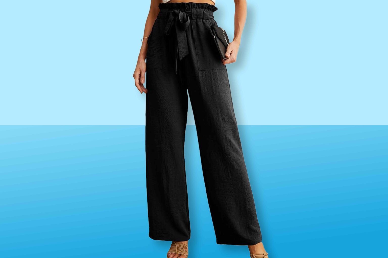 The pants have a paper bag-style waist that’s as cute as it is functional. It conceals an adjustable elastic waistband, complete with a pretty tie belt, preventing the pants from digging into your tummy when you bend or sit.