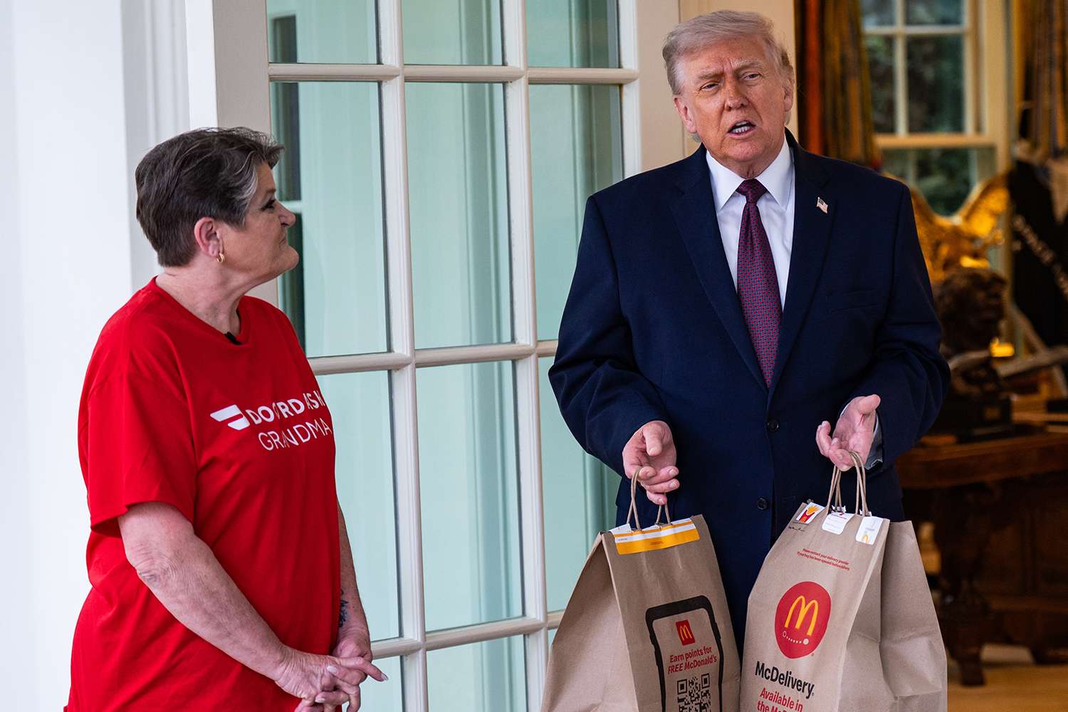 Trump, 79, also promoted the policy on Monday, April 13, when he received a McDonald's order from DoorDash delivery driver Sharon Simmons at the Oval Office doors.