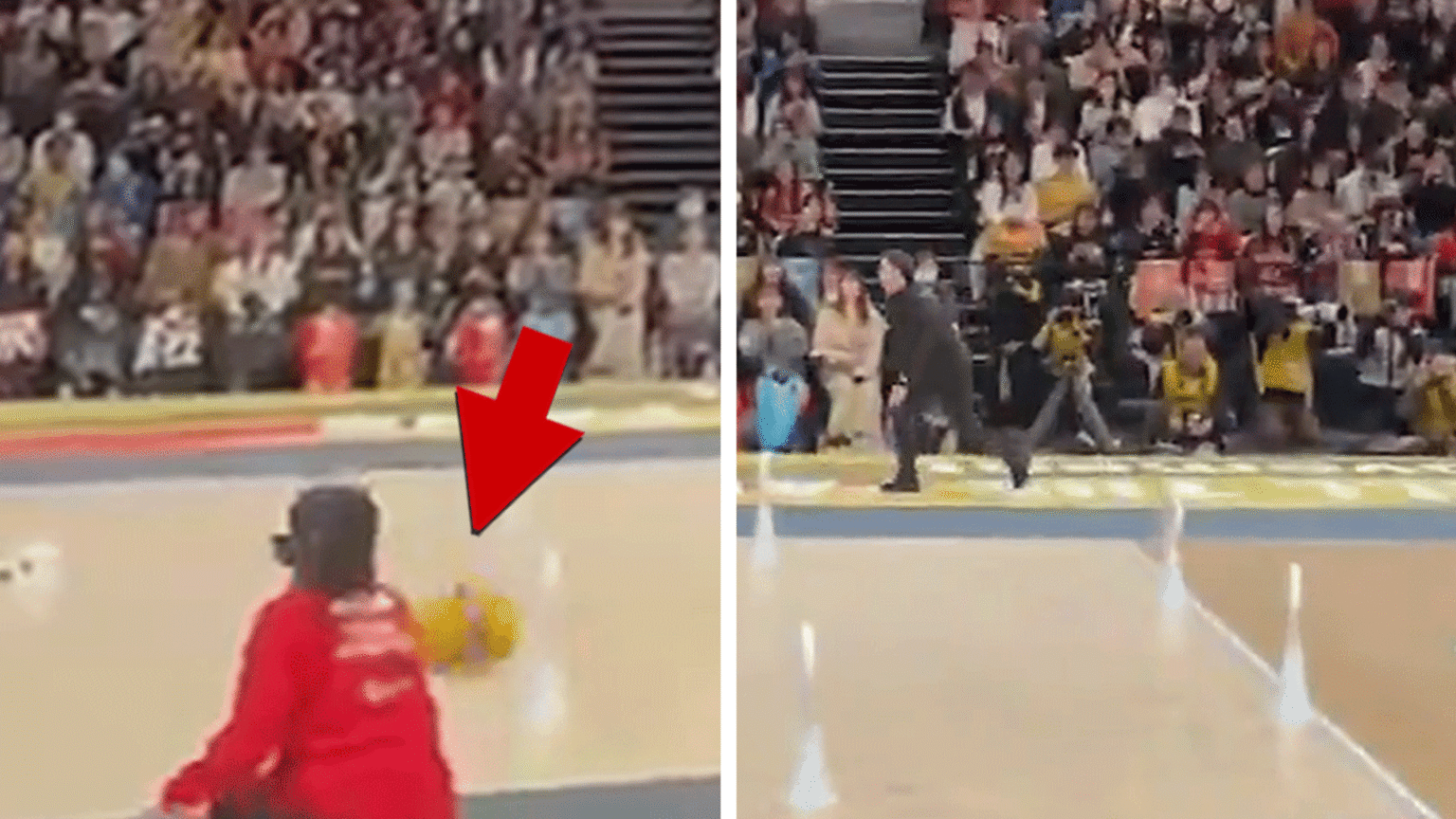 Nishida immediately sprinted toward the woman and slid on his stomach underneath the net and profusely apologized for the unintentional contact.