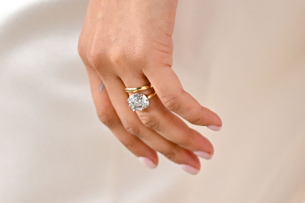 - The actress paired it with her engagement ring and what appears to be a wedding band she’s been seen wearing recently